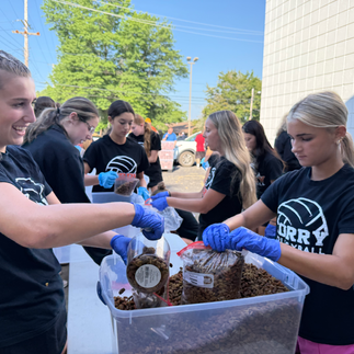 Corry Volleyball kicked off the first week of double sessions with daily practices, workouts and volunteering for this year’s chosen charity night beneficiary Avery’s Pawsitive Change Pet Food Pantry.